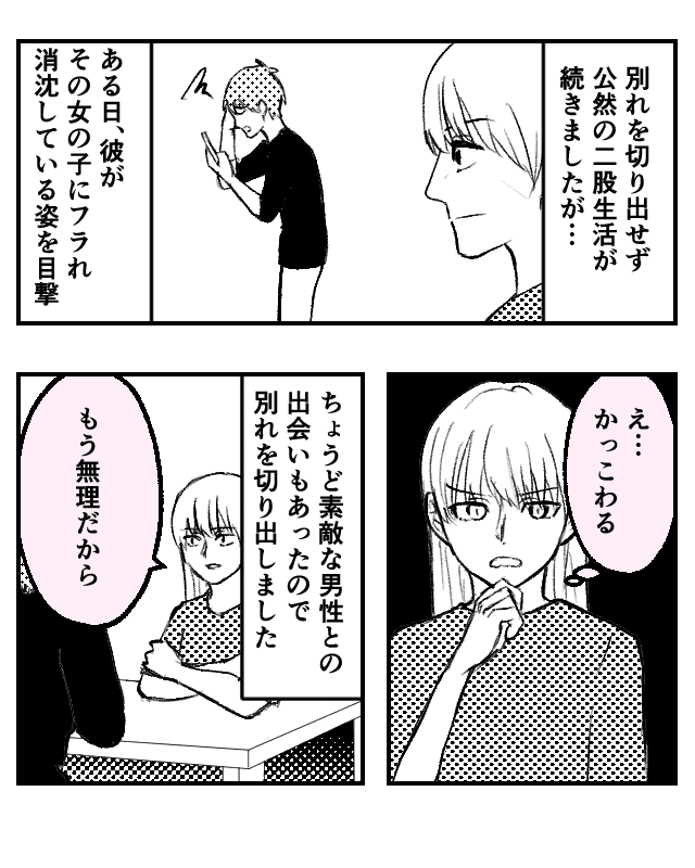 - ?【浮気されても好きだったのに】別れを告げられず“公然の二股生活”が続くも→“ある出来事”がきっかけで蛙化…!?