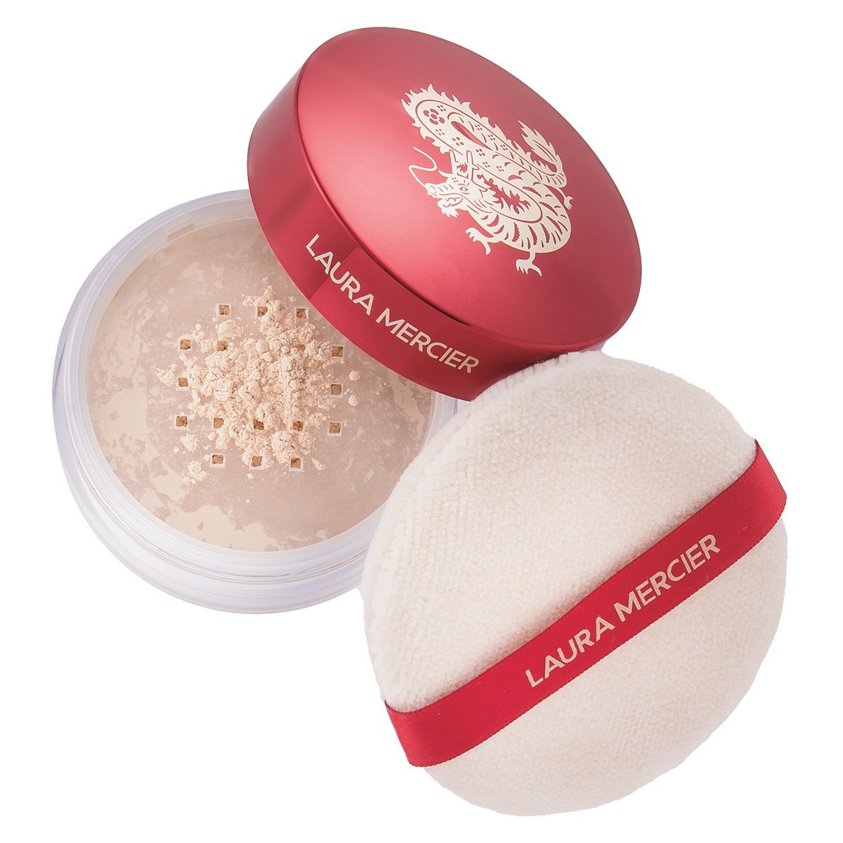 エネルギーに満ちあふれた“赤”と、富と幸福をもたらすといわれている黄金の“ドラゴン”を組み合わせた限定デザインのルースパウダー。雪のような繊細なパウダーが肌に溶け込むようになじみ、透明感のある肌を長時間キープ。肌当たりの優しいパフつき。