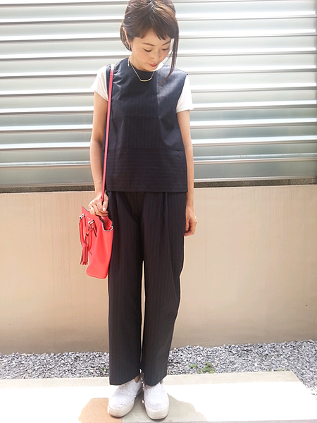 トップスの裾にはラインが入っているので、スタイルが良く見えます♭