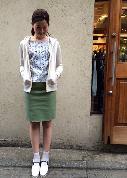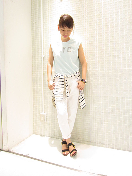 肩掛けカーディガンが数年前から流行っていますが、肩掛けパーカーも定着しています。春・夏は暑くなってくるのでパーカーは要らない。でも、冷房がきいてる場所では寒いから欲しい。そんなわがままも、おしゃれに解決してくれるのが、パーカーを巻いたコーディネートです。