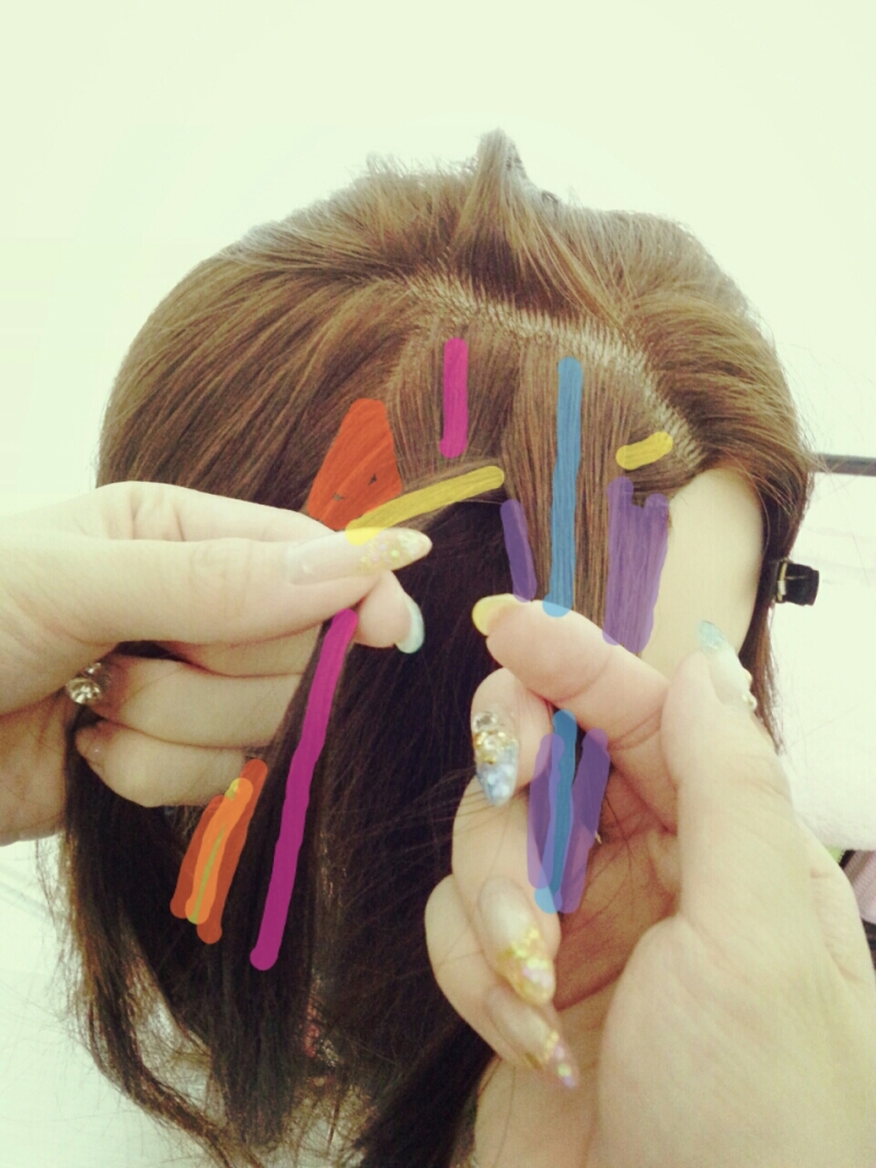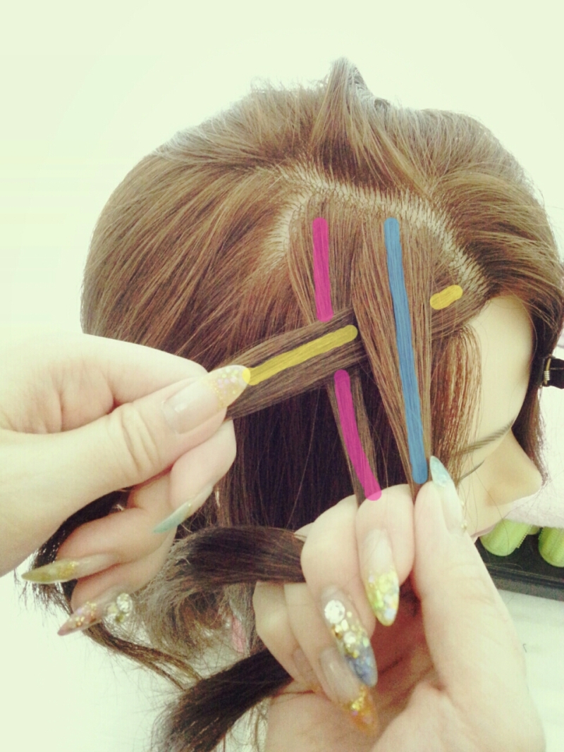 すくう位置は、右手で持っている毛束のすぐ下の位置です。