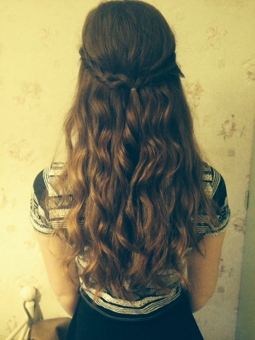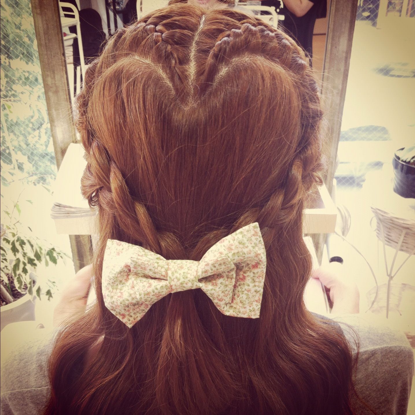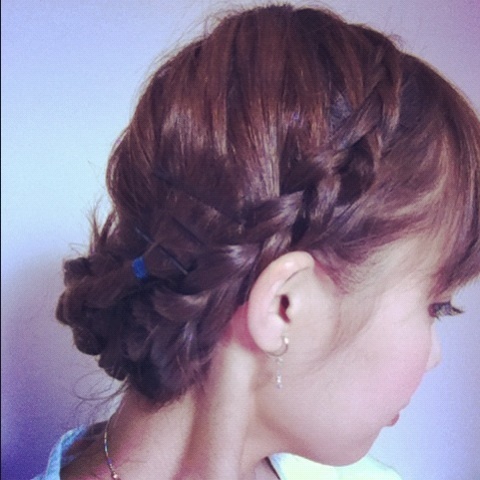 はじめは編み込み、途中から三つ編みをして後ろでまとめたハーフアップ!