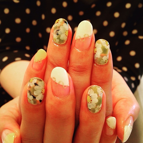 流行りの囲みネイルに、マーガレット柄をON♡