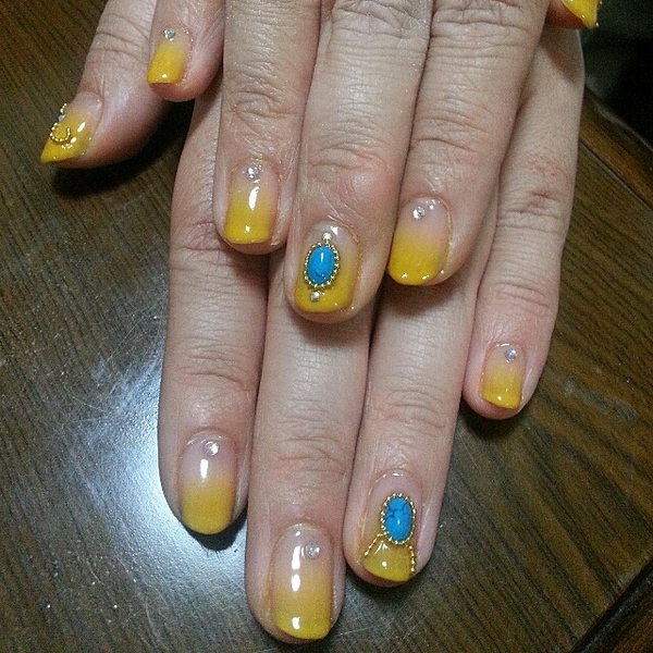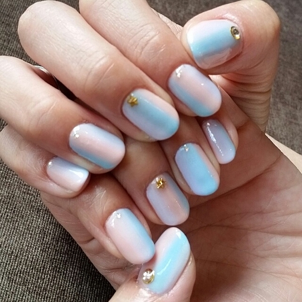 ブルー、イエロー、ピンクのグラデーション♡ピンクの部分を広くするとかわいく仕上がりますね