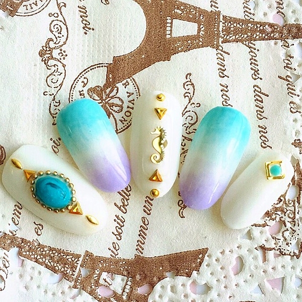 くりぬいた部分にはゴールドスタッズやストーンの詰め込んで、夏にぴったりの涼しそうなデザインです♪