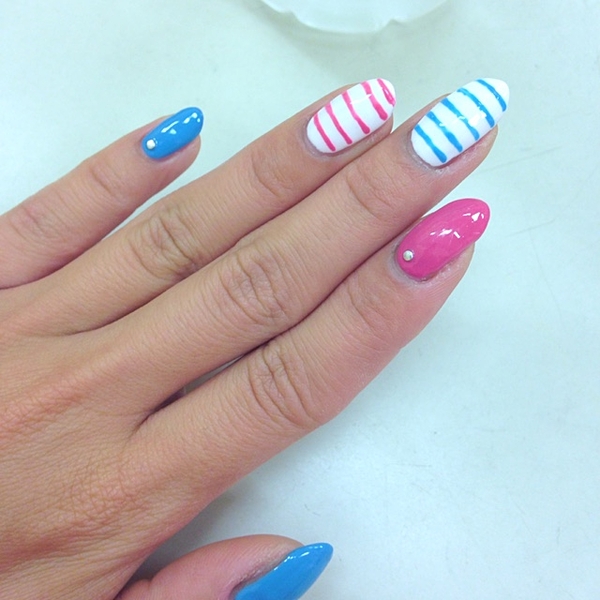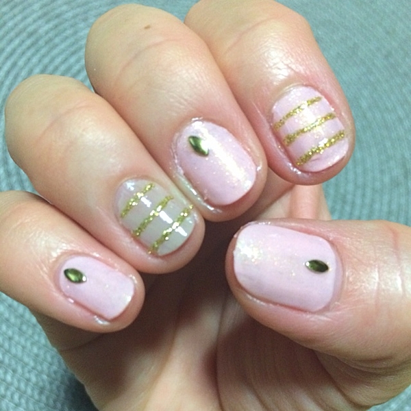 まっすぐきれいにひかないと! と思いがちなボーダーですが、多少太目でもラメラインなら手書きっぽさが出てかわいく仕上がります