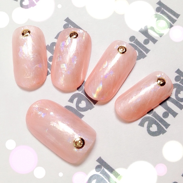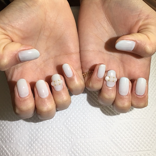 丸スタッズがポイント★単色だけだと寂しい手元も、パーツがあるとおしゃれに仕上がるのでまずはこうしたデザインにトライしてみるのもおすすめ