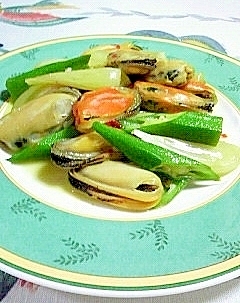 楽天レシピ:「ムール貝とオクラの甘辛炒め♪ 」より