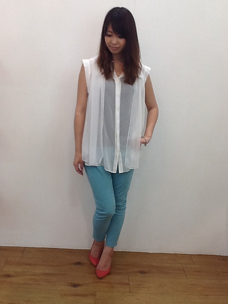 シンプルなネックラインなので、合わせてシンプルなネックレスをチョイスするといいと思います☆