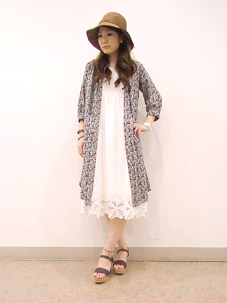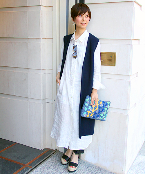 ロング丈の白ワンピースは清涼感を残して爽やかな大人っぽコーデ♭