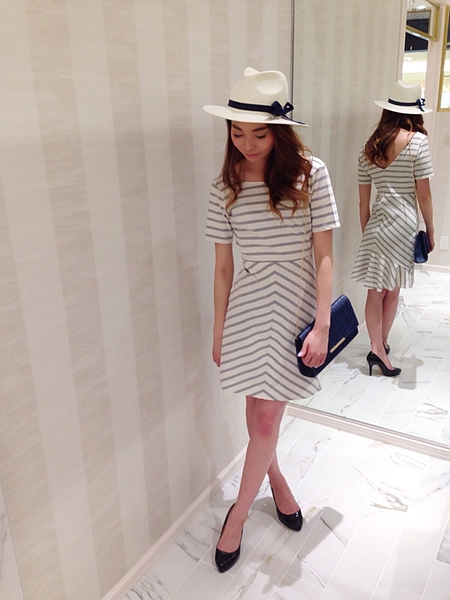 フレアワンピの甘さ×ボーダーの大人っぽさが新鮮。
