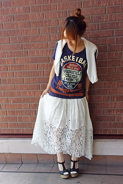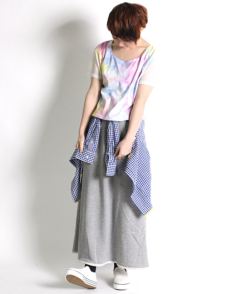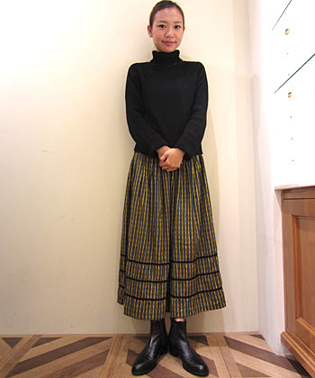 ロックテイストにしてみたりカントリー風な着こなしも似合うスカートですね。小物で個性を出しちゃいましょう。