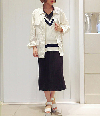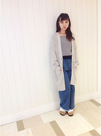 オールインワン、バギーパンツにも切りっぱなしで大人なアソビと小慣れ感を効かせております。