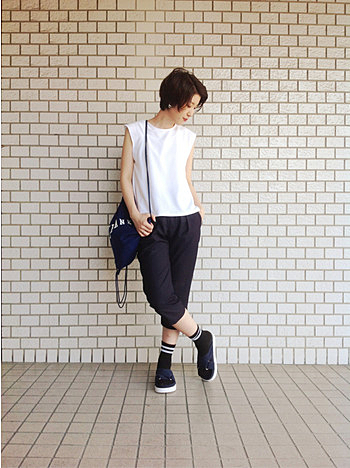 スポーティなアイテムにはカジュアルな合わせで、丈感なども気にすれば