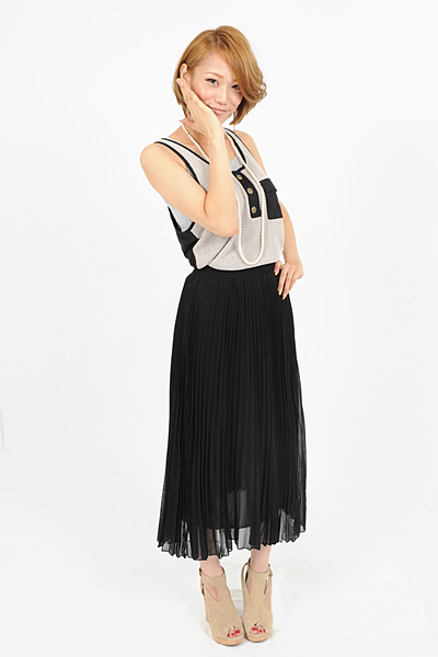 丁寧にたたまれたプリーツが動作に合わせて品良く揺れるシフォンスカート!
