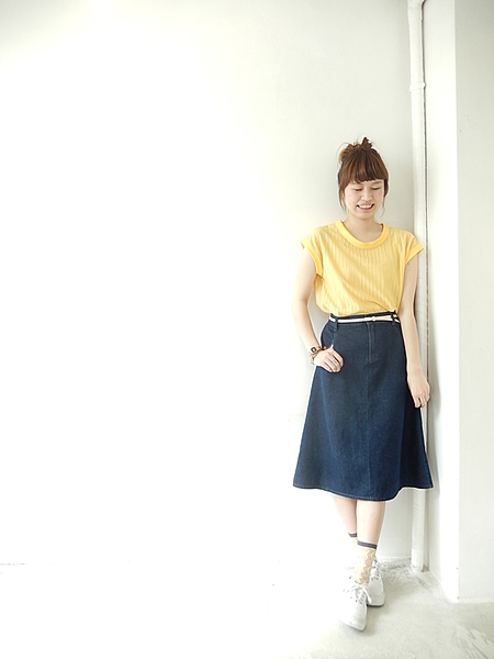 デニムスカートもあまり濃すぎない色を選ぶと爽やかな印象になります。