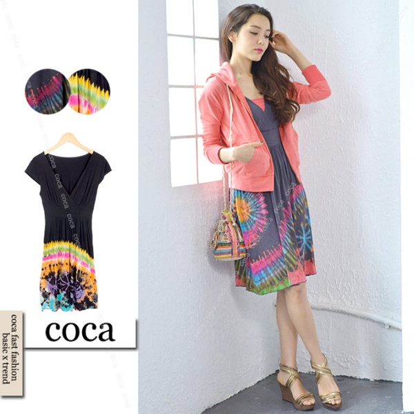 今回はそんなエスニック柄を使った夏にピッタリのワンピースをご紹介します。◆胸元カシュクールがおしゃれ