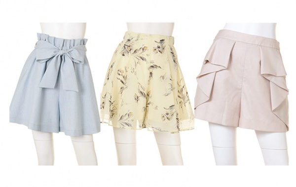 左はウエストのフリルや大きめのリボンがとってもチャーミングなキュロットパンツ。腰でキュッとしぼってあるので、メリハリのあるラインが作れますよ。