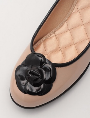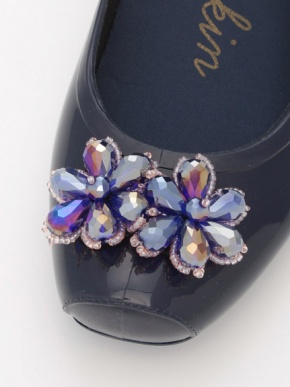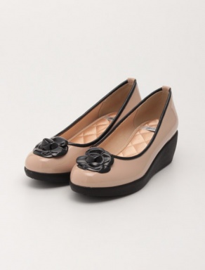 中央はパイピングがポイントのレトロ感漂う1足。エナメル加工がしてあるためツヤ感がたまらないですよね。大きなフラワーモチーフもキュートなアクセントになっています。