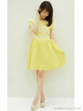 左は上半身の花柄レースが最高にキュートなレースドッキングフレアワンピース。ワンカラーでまとめてあるので子供っぽさはなく、大人女子でも着こなせますよ。ボトムラインがフレアな作りになっているので、脚も細く見えますね。