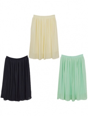 細プリーツで揺れるシフォンがふんわりとし、パステル調のカラーが可愛いスカート。透け感のある生地で爽やかさもアップしています。