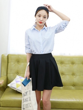 ミニ丈で大人っぽい雰囲気の1枚。太めのプリーツでボリュームを出しています。スニーカーやシャツと合わせれば甘カジュアルコーデの完成ですね。