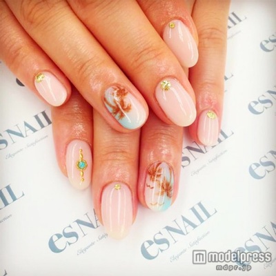 ネイルの定番カラー“シアーベージュ”。オフィスやドレッシーなスタイルなど、どんなコーディネートとも合わせやすく、年間通して大人気のカラーです。今回は、そんな“シアーベージュ”をベースとした夏デザインネイルをご紹介します。