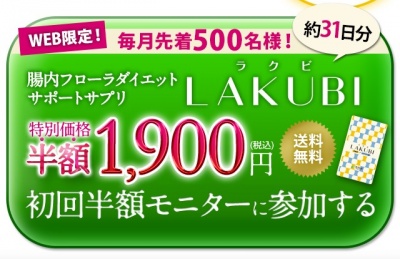 通常3,800円で販売の『ラクビ(LAKUBI)』ですが、発売開始を記念して先着500名限定で初回半額モニターを募集しています。
