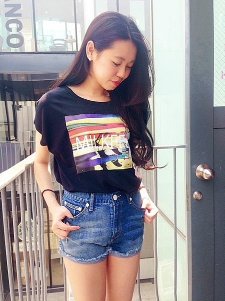 ノーマルのショートパンツよりハイウエストショートパンツのがスタイルよく見えるので初心者さんでも簡単にオシャレに見えますよ♡