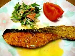 楽天レシピ:「フライパンで!バター醤油味☆鮭のムニエル 」より