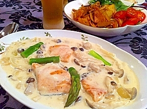 楽天レシピ:「お肌にうれしい~☆鮭のクリームシチュー 」より