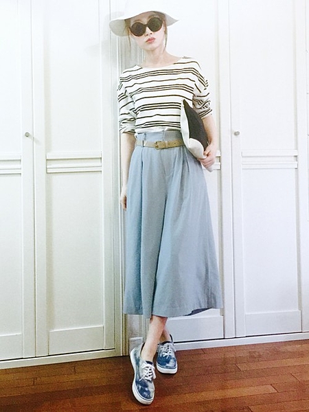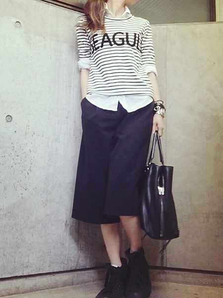 ネイビーのガウチョパンツとも相性◎