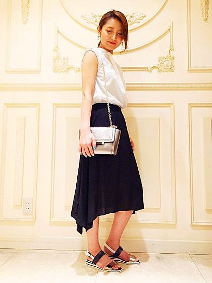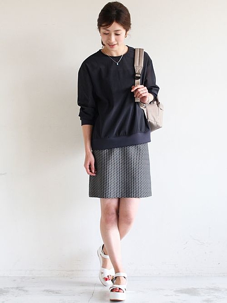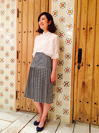 ネイビーのミディスカートは落ち着いた印象をつくれる♪