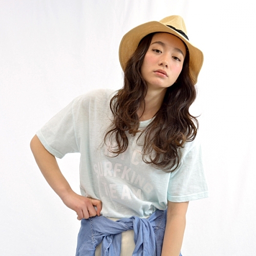 メンズライクなロゴTはオーバーサイズが可愛い!!パステルなカラーバリエーションで「女子感」も忘れません。クラッシュデニムと合わせても◎