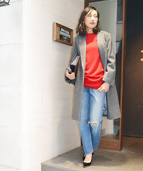 パンプスに合わせたいのはクラッシュタイプのボーイフレンドデニム。程よいダメージ加工にキレイめパンプスのギャップで女っぽさを出して。