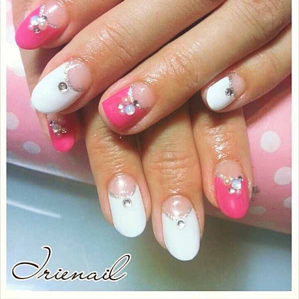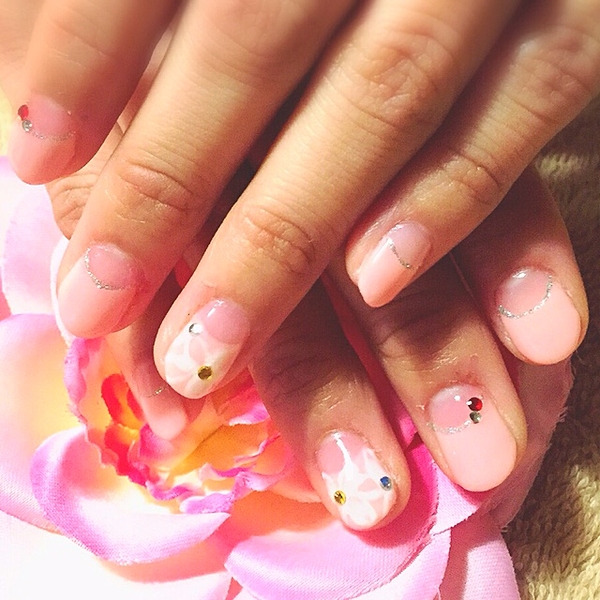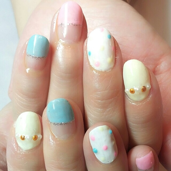 フレンチ部分に、パステルカラーでドットを描いたデザインです。