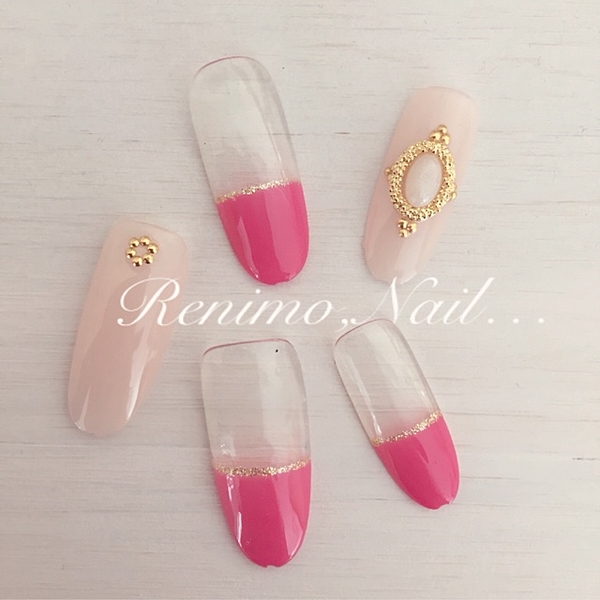 ラインをゴールドで引く事でメリハリも生まれます。ホログラムのドットがかわいらしデザインです。