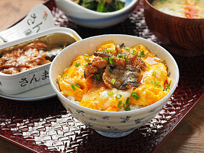 楽天レシピ:「めちゃ早!簡単!サンマ缶de卵丼ぶり。 」より