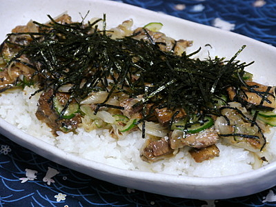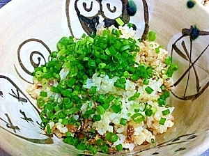 シンプルに蒲焼缶詰を混ぜ込んでネギを大盛り!