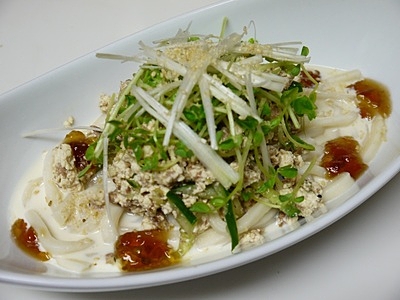 イソフラボンたっぷり♪蒲焼缶で白和えうどん