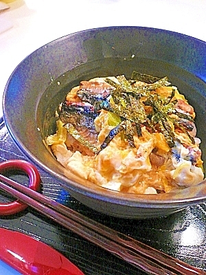 長ネギと卵をプラスして作るさんま蒲焼入り玉子丼。