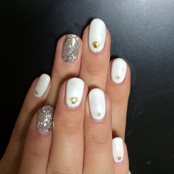何本かシェルを散らして、上品なキラキラ感をプラス♪