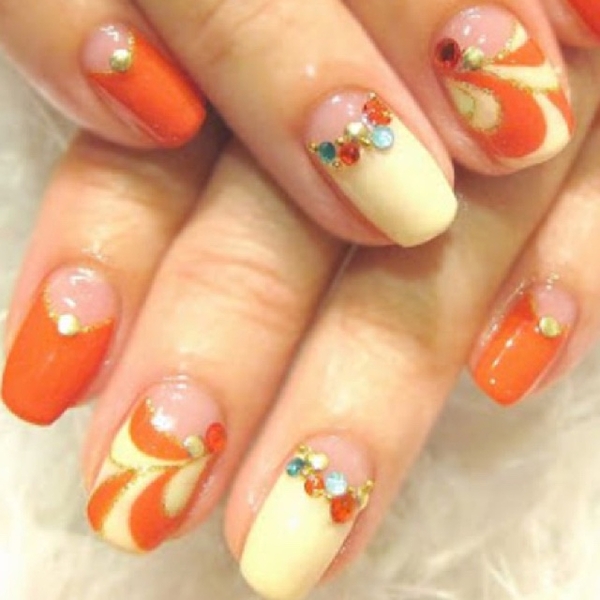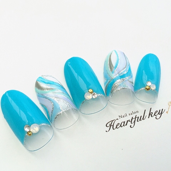 ストーンもブルーやオレンジでカラフルに仕上げた、夏にぴったりのデザイン♡