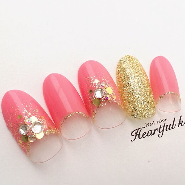 ピンク1色でフレンチにするよりも、やわらかい印象の手元にしてくれます♪
