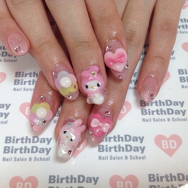 さりげないカラーもすてきだけど、やっぱりネイルは大胆に3Dが可愛い!キャラクターネイルも着けてみると本当に可愛くて、ついつい自分の爪にうっとり見惚れてしまいます。難しそうに見える3Dネイルでも、ネイルシールやパーツをうまく着けることによって、オシャレで綺麗なスタイルに仕上がるんですよ。是非やってみてください♡