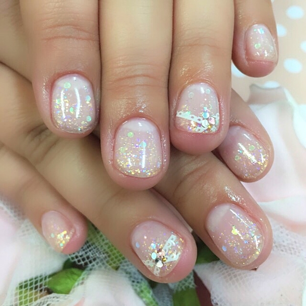 メインのピンクのラメに細かく入った、ブルーのラメが素敵。