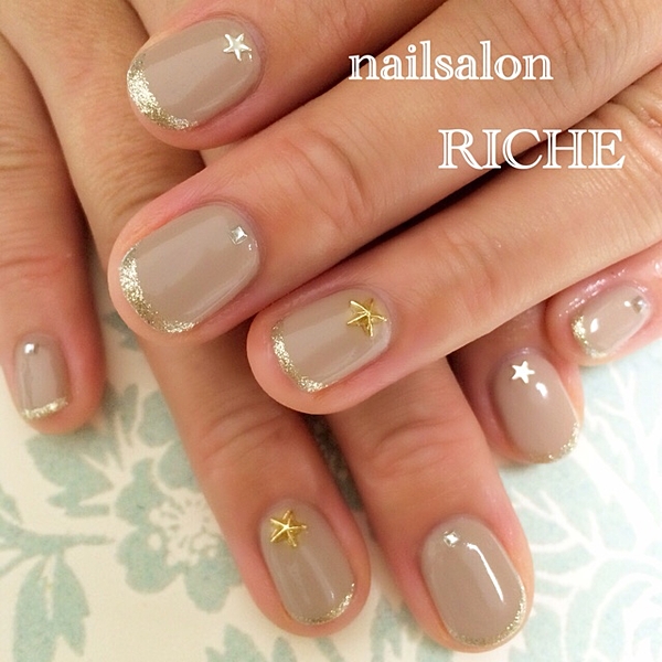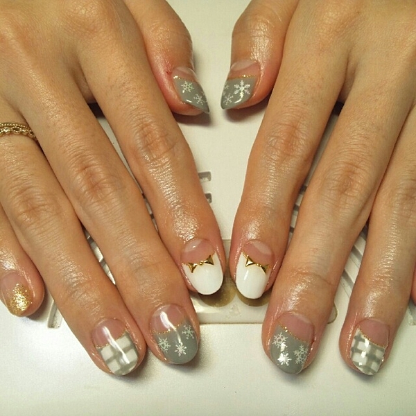 グレーやベージュの上品カラーでまとめたななめフレンチ