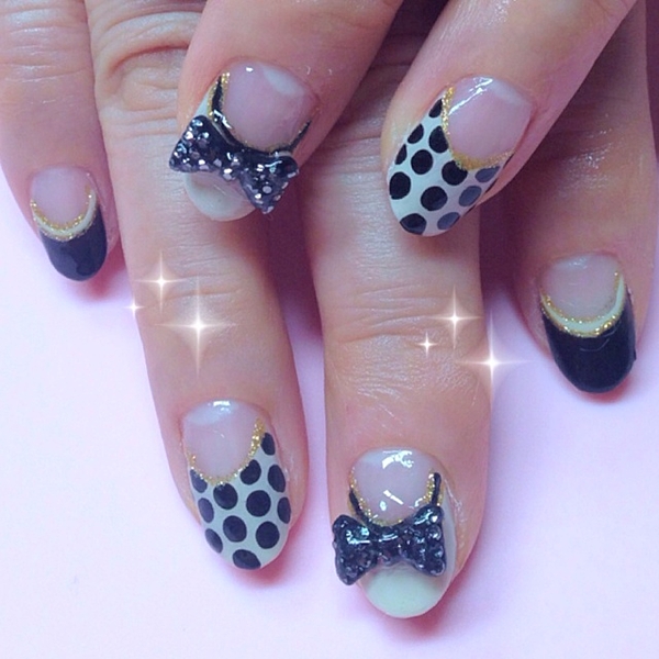 ホワイトとブラックでまとめたガーリーネイル