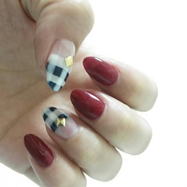 他の指をボルドーのシンプル塗りでまとめて、セクシーさをプラスして・・♡
