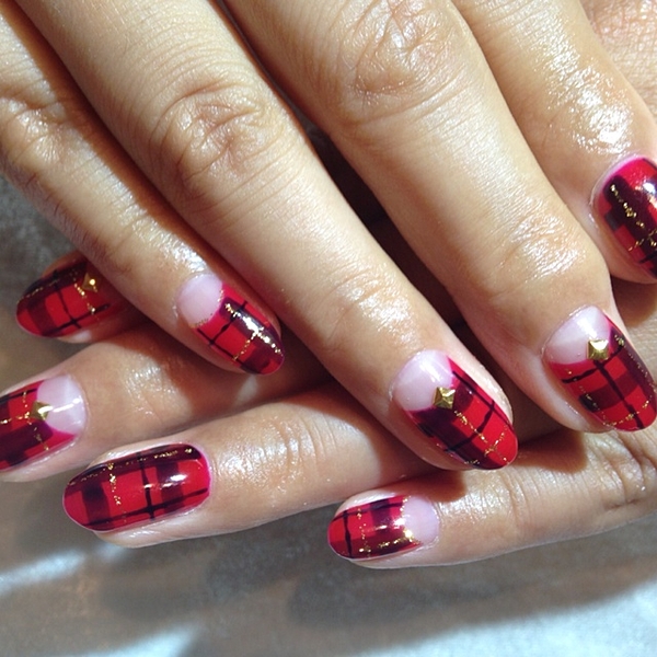 逆フレンチにすると、チェック部分が広くなるので目立ちますね♪